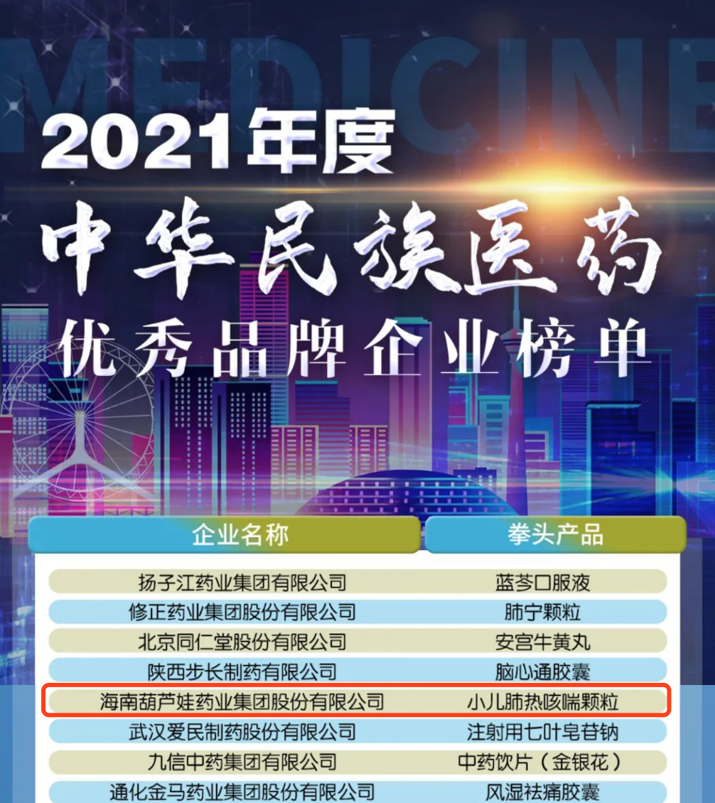 12月29日,全国工商联医药业商会发布了“2021年度中华民族医药优秀品牌企业榜单”,东升国际药业集团凭借黄金单品小儿肺热咳喘颗粒(4克)实力登榜。